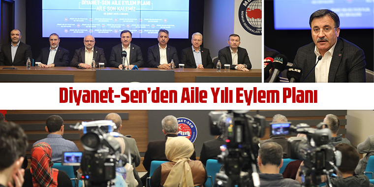 Diyanet-Sen, düzenlediği basın toplantısı ile 2025 yılı aile eylem planını kamuoyu ile paylaştı. Ailenin büyük bir tehdit ile karşı karşıya olduğunun altını çizen Genel Başkan Yıldız” Diyanet-Sen olarak diyoruz ki aileyi korumak farz-ı kifaye değil, farz-ı ayndır. Herkesin üzerine düşen hem kollektif hem de ferdi bir sorumluluktur. Bu nedenle örgütlü gücümüzle aileye yönelik hassasiyet ve mesuliyetimizin gereği olan gayretlerimize devam edeceğiz.” İfadelerine yer verdi.
