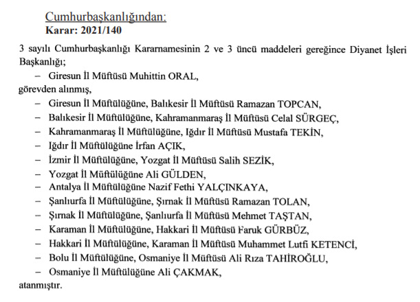 Diyanet-Sen Konya Şube Başkanı Ali Koç yaptığı açıklamada beklenen atamanın gerçekleştiğine vurgu yaptı ve yeni İl Müftüsü Doç. Dr. Ali Öge’ye başarılar diledi.