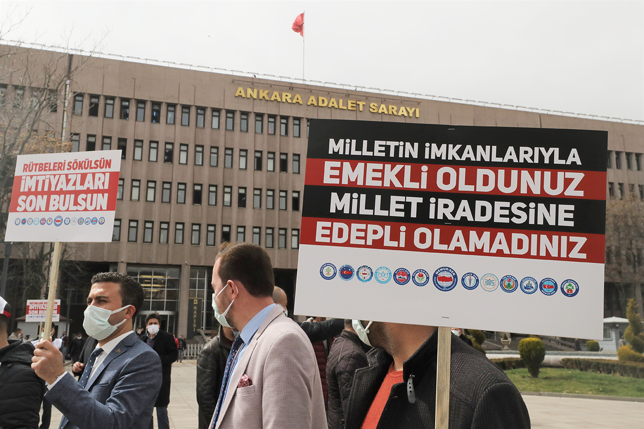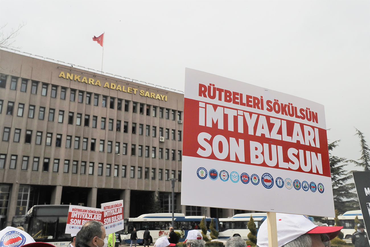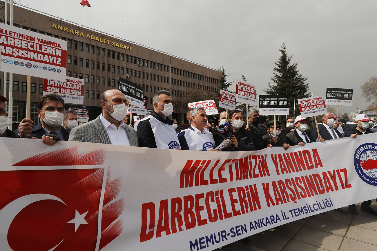Biz de Memur-Sen olarak 81 ilde milletin iradesine karşı bir müdahale hevesi olarak gördüğümüz bu meş’um açıklama ve o açıklamaya imza atanlar hakkında suç duyurusunda bulunuyoruz. Hazırladığımız dilekçeyi savcılığa teslim etmek için bir araya geldik. Millet olarak, irademize uzanmak isteyen elin ve arkasındakilerin ortaya çıkarılmasını, yargılanmasını, cezalandırılmasını istiyoruz. Vesayet sevdalılarına hadleri bildirilmeli, darbe heveslileri yargı önünde hesap vermelidir. Öte yandan bu bildiriye imza atanların siyasete müdahale aracı olarak kullandıkları rütbeleri ellerinden alınmalı, o rütbeler üzerinden elde ettikleri kazanç ve imtiyazlar sona erdirilmelidir.
