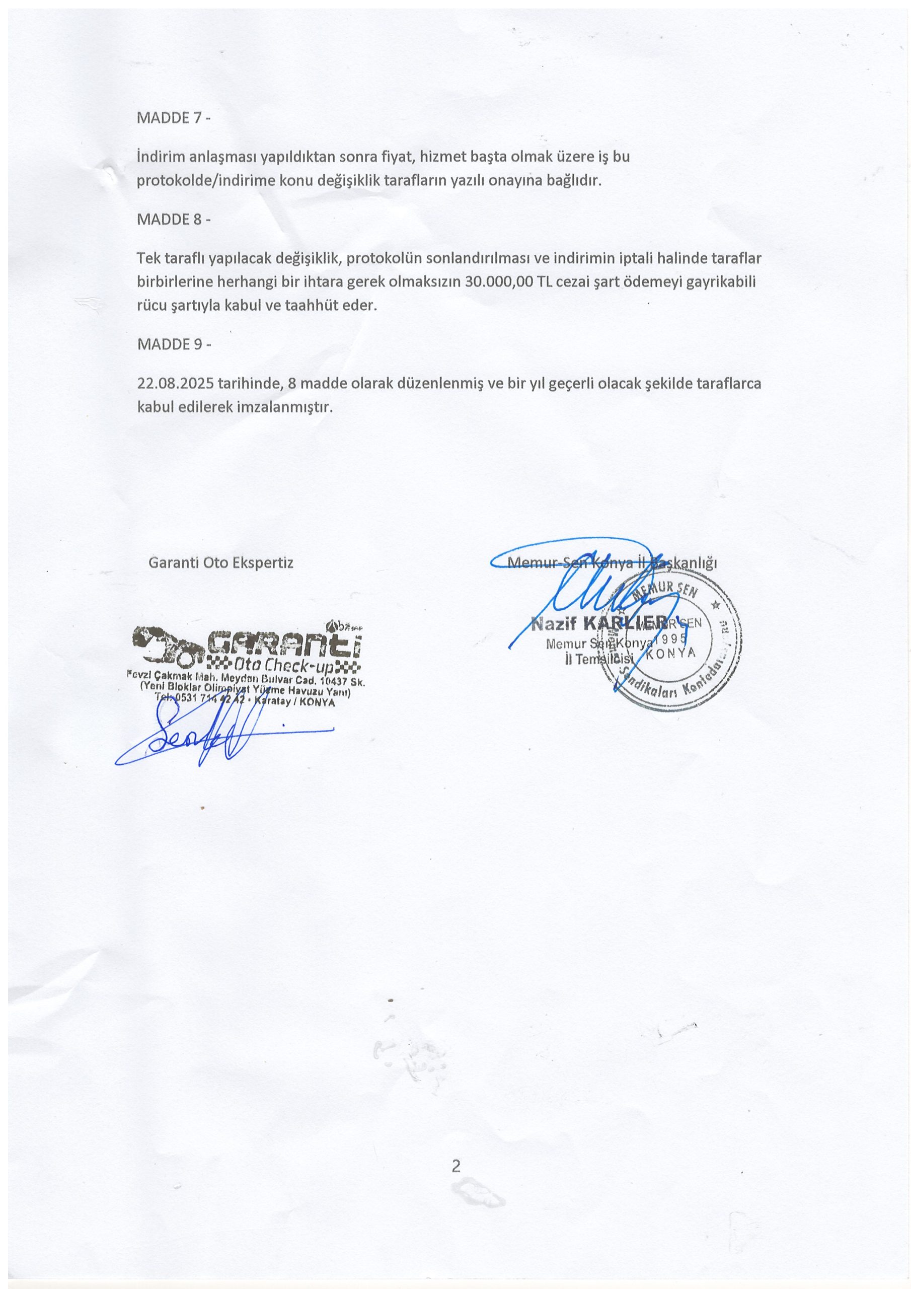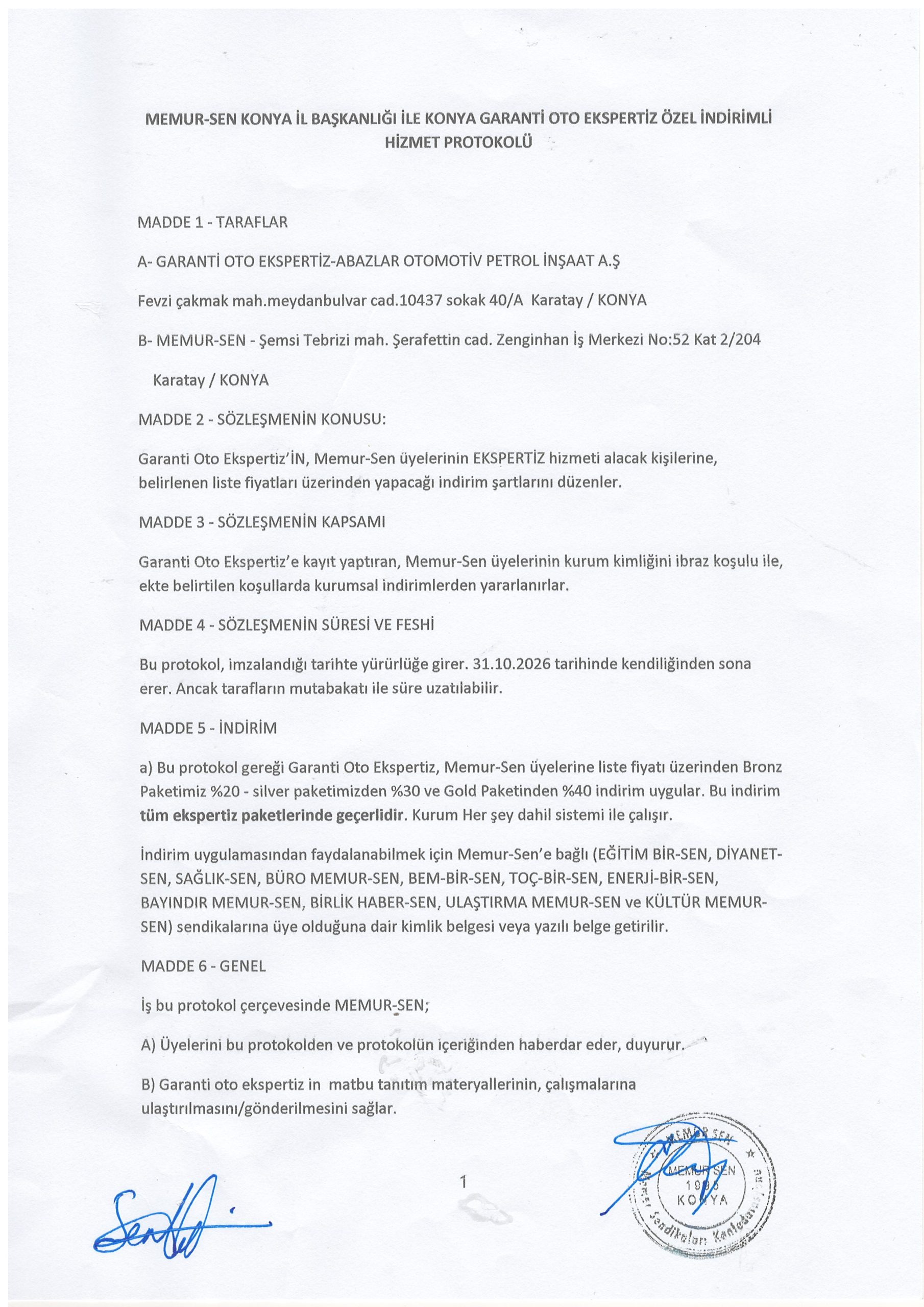 Memur-Sen Konya İl Başkanlığı ile Garanti Oto Ekspertiz firması ile özel protokol yaparak sendika üyelerine %40 özel indirimli hizmet alım imkânı sunuyor.