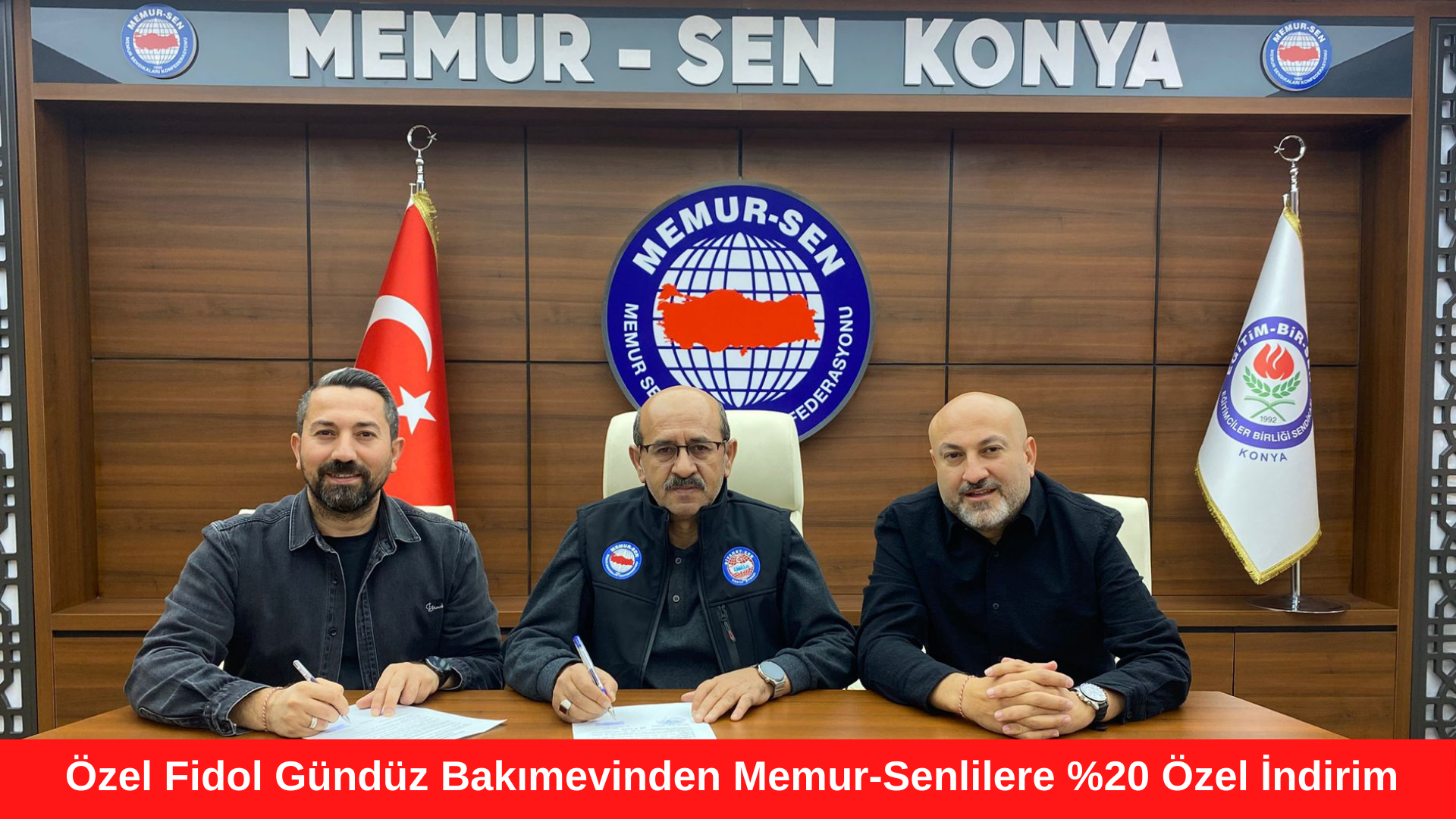 Memur-Sen Konya İl Başkanlığında imzalanan özel indirimli hizmet sözleşmesine Memur-Sen İl Başkan Vekili Ali Koç ile Özel Fidol Gündüz Bakımevi Kurucusu Ersin Topal katıldı.