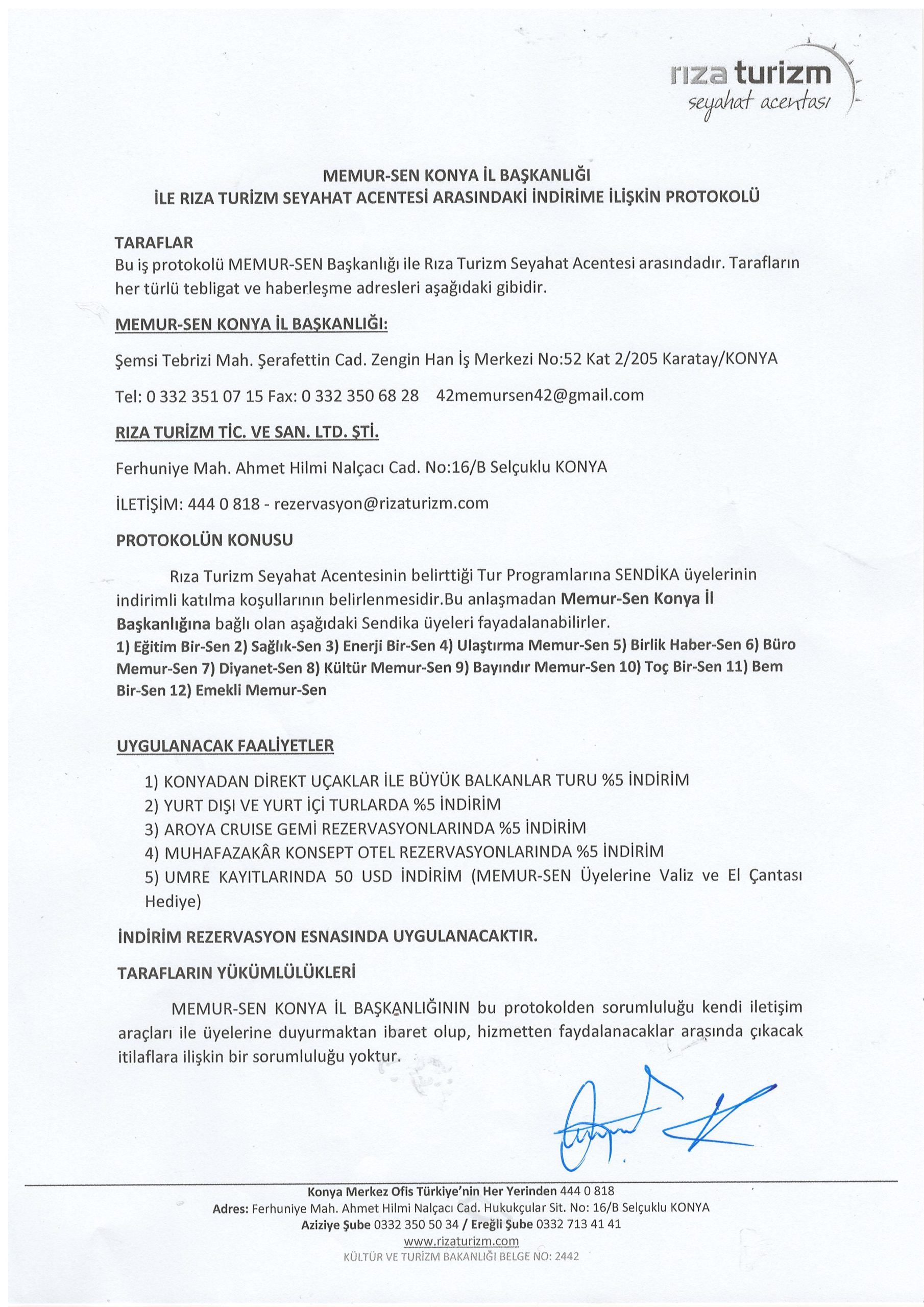 Rıza Turizm’den Memur-Senlilere %5 Özel İndirim |